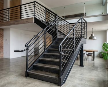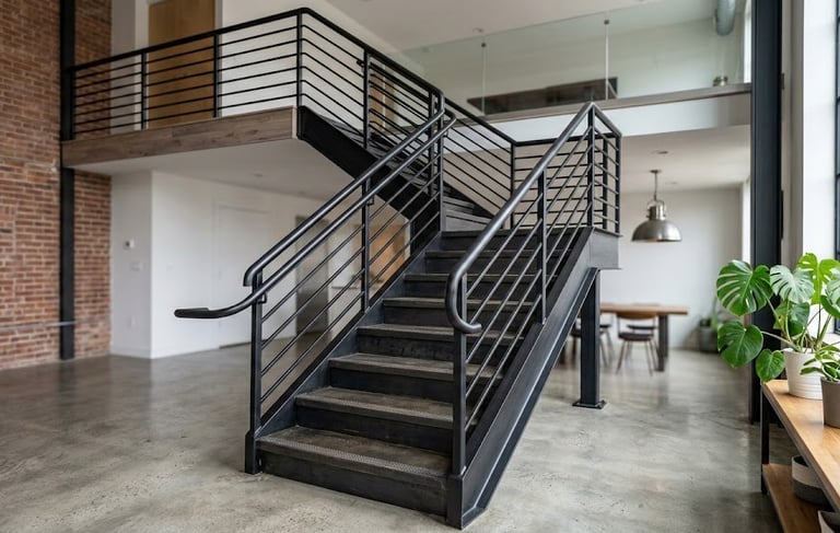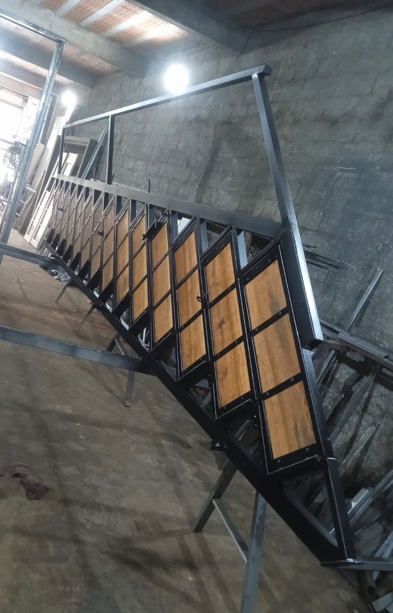 Nossa escada de ferro é a solução ideal para quem busca durabilidade, segurança e um visual contemporâneo. Com estrutura robusta em aço carbono e acabamento refinado, ela combina perfeitamente com ambientes residenciais, comerciais ou industriais.